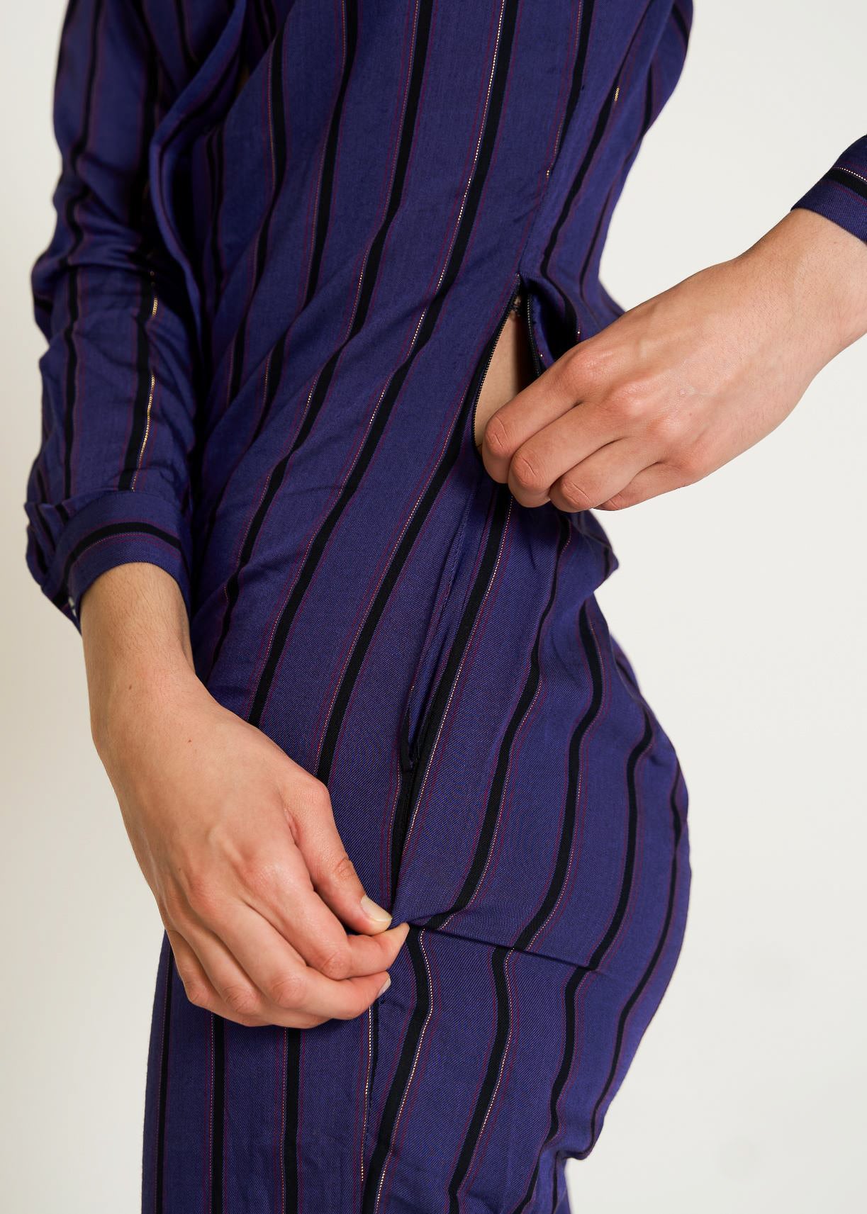 Renée c'est une coupe simple, droite, cintrée juste ce qu’il faut. La coupe chemise permet beaucoup de choses: boutonnée jusqu’en haut pour un look strict ou ouverte façon décolleté. Sa ceinture amovible souligne bien la taille, et permet à cette combinaison de s'adapter à toutes morphologies. La coupe du pantalon est une coupe droite simple. En été, faites roulotter la jambe façon petit ourlet pour libérer vos chevilles et vous pouvez également détacher grâce aux boutons pressions les manches pour un look adapté jusqu'au bout !
